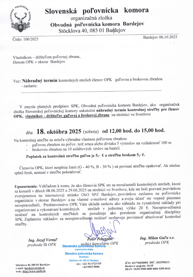 V priestoroch poľovníckej strelnice vo Sveržove sa uskutočnili okresné strelecké majstrovstvá Broková dvojka pod dozorom hlavného rozhodcu Ing. Ladislava Šuľu. Najlepšie výsledky v tomto roku 2025 dosiahli :